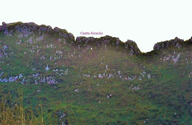 Dejamos el coche al lado del Sucón y tomamos un ancho camino que nos lleva a Rufresnu , lugar con grandes praderías y donde enseguida nos desviamos por un entretejido camino para observar la Cueva Rufresnu, no muy grande pero ubicada en un rincón precioso. Volvimos sobre nuestros pasos y ascendimos por la pradería encontrando una buena cuadra La Corte Rufresnu. Por buen camino nos acercamos a Llaborín , obteniendo excelsas panorámicas de la Peñe Villa, Llabres y los valles circundantes. Seguimos por pista para llegarnos a Las Xareras , con un conjunto rural impresionante y muy cuidado. Camino arriba, por cuesta bien pindia, vamos recorriendo la Conchuca, La Xerre , dejando abajo La Valleyona y nos desviamos por la Concha Baju con un senderín labrado en la caliza para tras dejar Las Conchas, llegar a las cabañas arregladas y cuidadas de La Venta, donde tomamos una fruta y esperamos a Pilar y César, Guías del Cuera. Pasado el Práu Collón, allá que empezamos a empericotarnos por una pindia ladera de terreno mixto de argaña y piedra, donde Julio - de pionero - ascendió hasta la cumbrera - mal terreno comentó- y cuando parecía que ya dábamos por zanjado la incursión para ver el " juracu calizo" , allá que dio con él y fuimos subiendo casi de uno en uno, por falta física de espacio para más. Una maraña de piedra, hierbas largas y brotes de avellanos - bien nos ayudaban para poder engancharnos y no resbalar- y allí que amanecimos en el Cantu Juracáu desde donde vimos cumbres míticas como el Urriellu, Llerosos o Torrecerredo... Bajando con toda la atención de la que somos capaces, Piluca y César se fueron ya a su cabaña y nosotros continuamos hasta el Senderu, con cuadras derruidas, y nos sentamos un ratín para comer un bocado y observar el Valle de Terviña con magnífica panorámica. Seguimos la marcha por las cuadras La Canal , dejando el Paré a nuestra derecha, para llegando al Práu Castillo, por terreno muy embarrado , presentarmos en Vega Antona con cuadras magníficas y buena juente. Allí giramos a la izquierda , y comenzamos a caminar por angosto camino y por la Xerre el Molín , fuimos descendiendo por terreno kárstico con mucha atención, para llegarnos a La Boriza, cumbre modesta pero desde la que se obtiene un panorama bellísimo de Meré y El Cuetu, así como de las Sierras colindantes...para no cansar de mirar!!! Por buen camino , dejando una gran cuadra en bastante mal estado, el Texu, salimos a una pista que nos llevaría al Colláu con ovejas en el prau y buena cuadra. Por pista y cruzando praos para acortar algo, pasamos por la Riega la Córcoba - de grandes recuerdos para nuestros amigos por haber pasado allí su infancia- y finalmente , parando en Debodes a asearnos un poco en su magnifica fuente- cruzamos el pueblo admirando sus cuidadas casas que han arreglado muchísimo y pasando por el complejo de Llanuamieva , llegamos al Sucón, donde en su estupendo bar tomamos unas claras después de haber pateado un buen tramo de terreno por esas tierras llaniscas tan desconocidas y bellísimas.